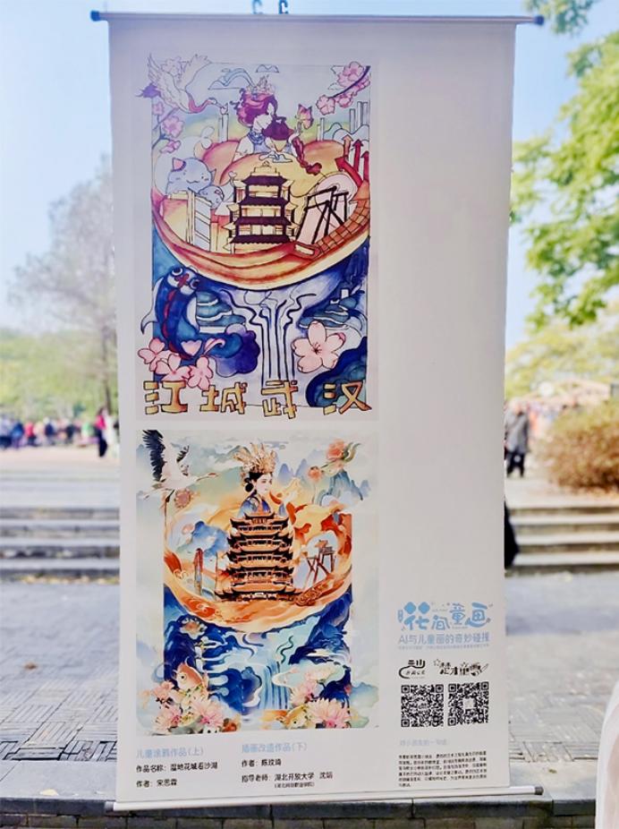 本网讯(通讯员 沈娟 文/图)11月2日,由沙湖公园管理处、长江日报、微冰艺术联合主办的 “花间童画 — AI与儿童涂鸦的奇妙碰撞”在沙湖公园C区开幕, 由长江日报大武汉新闻客户端报道。活动精选 130 幅儿童涂鸦作品,为使其更具魅力,并特别邀请了中国设计师沙龙CDS、湖北省文化创意产业协会、优设AI俱乐部、湖北工业大学、湖北美术学院等100位设计师和高校团队参与,利用先进的AIGC技术,对孩子们的画作进行了深度分析和二次创作。