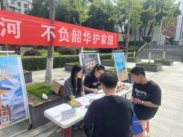 “一站式”学生社区责任老师带领学生志愿者在银杏广场设立“征兵宣传咨询点”,利用毕业生返校这一契机,为有意向参军的毕业生提供“一对一”政策咨询和报名指导服务,发放《征兵宣传手册》与《参军入伍指南》,确保信息精准送达。