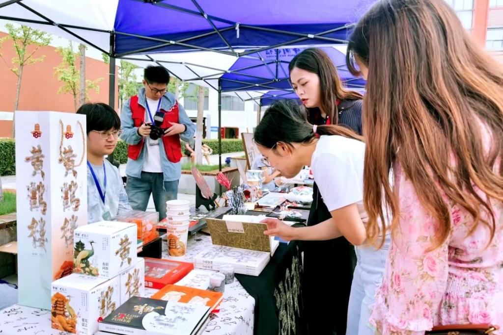学院打破传统报到流程,将专业展示融入沉浸式艺术体验。银杏广场上,六大专业展区化身“微型艺术展馆”。动漫设计专业带来手办与动态短片,吸引新生驻足交流;艺术设计与广告艺术设计展区陈列创意海报与文创产品,展现专业魅力。在“识艺术”体验区,学长学姐们现场教学扎染、剪纸等非遗技艺,新生们在动手实践中真切感受到艺术的温度。