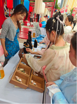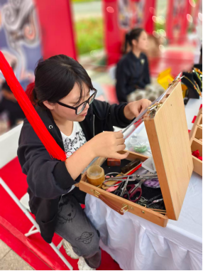 在现场,我校学生扮演了多重角色。他们不仅是创作者,更是非遗文化的“讲解员”、品牌故事的“讲述者”与现场销售的“运营者”。学生们主动向观众介绍非遗技艺的历史渊源与制作工艺,耐心解答疑问。学生们通过此次活动,让传统非遗焕发新的生命力,并得到公众的认可,极大地增强了文化自豪感与传承中华优秀传统文化的使命感。