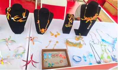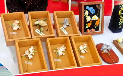本次嘉年华活动深度融合传统戏曲文化与现代潮流元素,旨在为广大市民打造一场别开生面的文化盛宴。我校展区集中展示了绒花、缠花以及蓝染三大工艺门类。这些作品不仅保留了传统非遗技艺的精髓,更巧妙地融入了现代审美和设计理念,充分体现了“国潮”文化守正创新的精神。