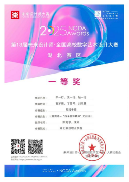 据悉,未来设计师・全国高校数字艺术设计大赛由工信部主办,作为入选教育部“白名单”的国家级赛事,每年吸引全国1800多所高校参赛,其中,“双一流”大学占比93%。东方设计奖是教育部所属中国高等教育学会《全国普通高校大学生竞赛分析报告》观察目录中的A类赛事。在此次竞赛中,我校2023级艺术设计专业学生石梦雨、丁雪琴、刘欣慧的作品《干一行、爱一行、钻一行》,荣获东方设计奖高职高专组全国二等奖,同时荣获未来设计师・全国高校数字艺术设计大赛湖北省一等奖。