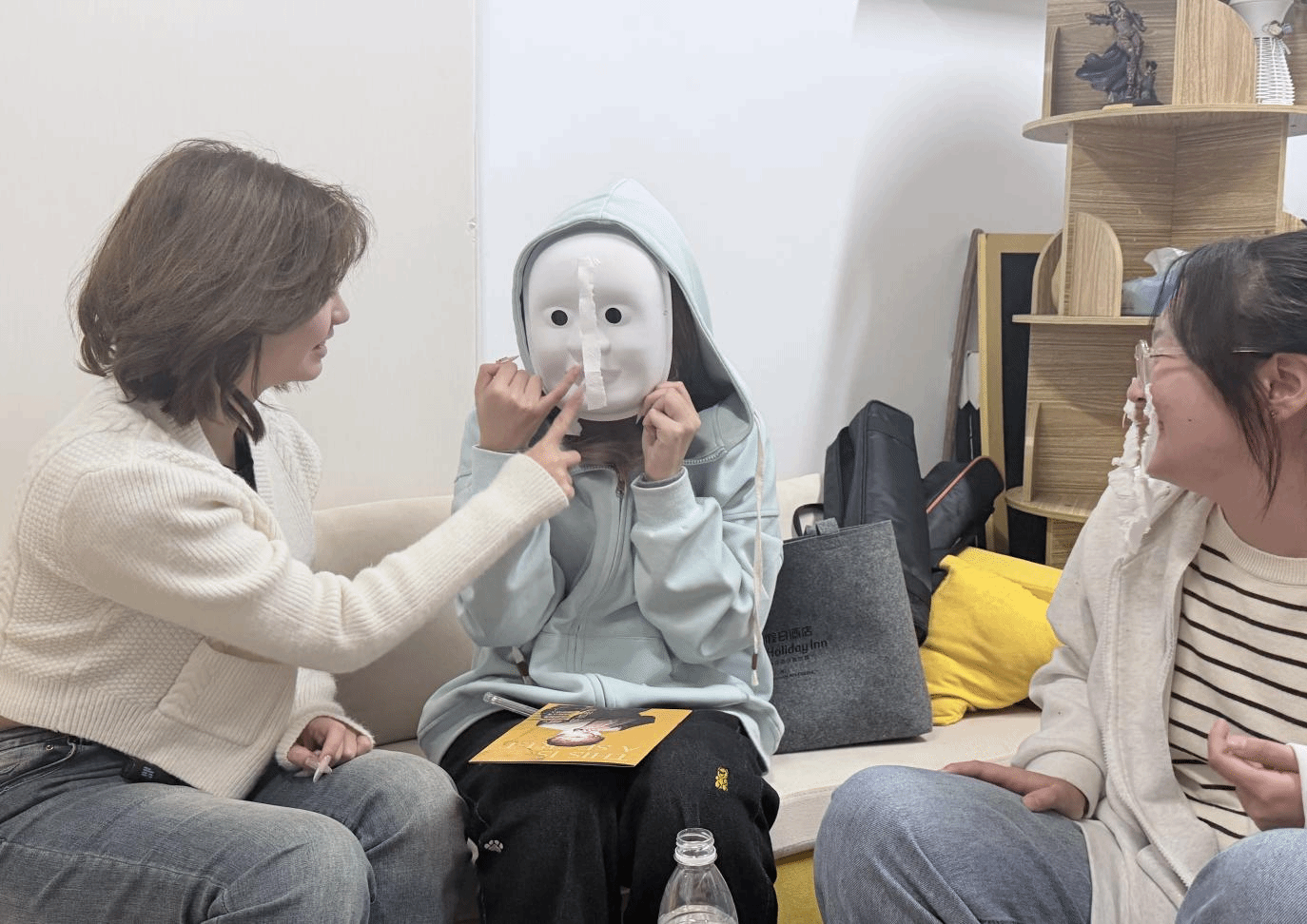 画面中,同学们或戴着特色面具演绎内心的“情绪冲突”,或围坐在一起研读剧本、分析角色心理。这种沉浸式的体验,不仅让参与者在角色扮演中觉察自我情绪、梳理心理状态,也让围观同学在观演中收获心理共鸣,学会以更包容的心态看待自身与他人的心理变化。