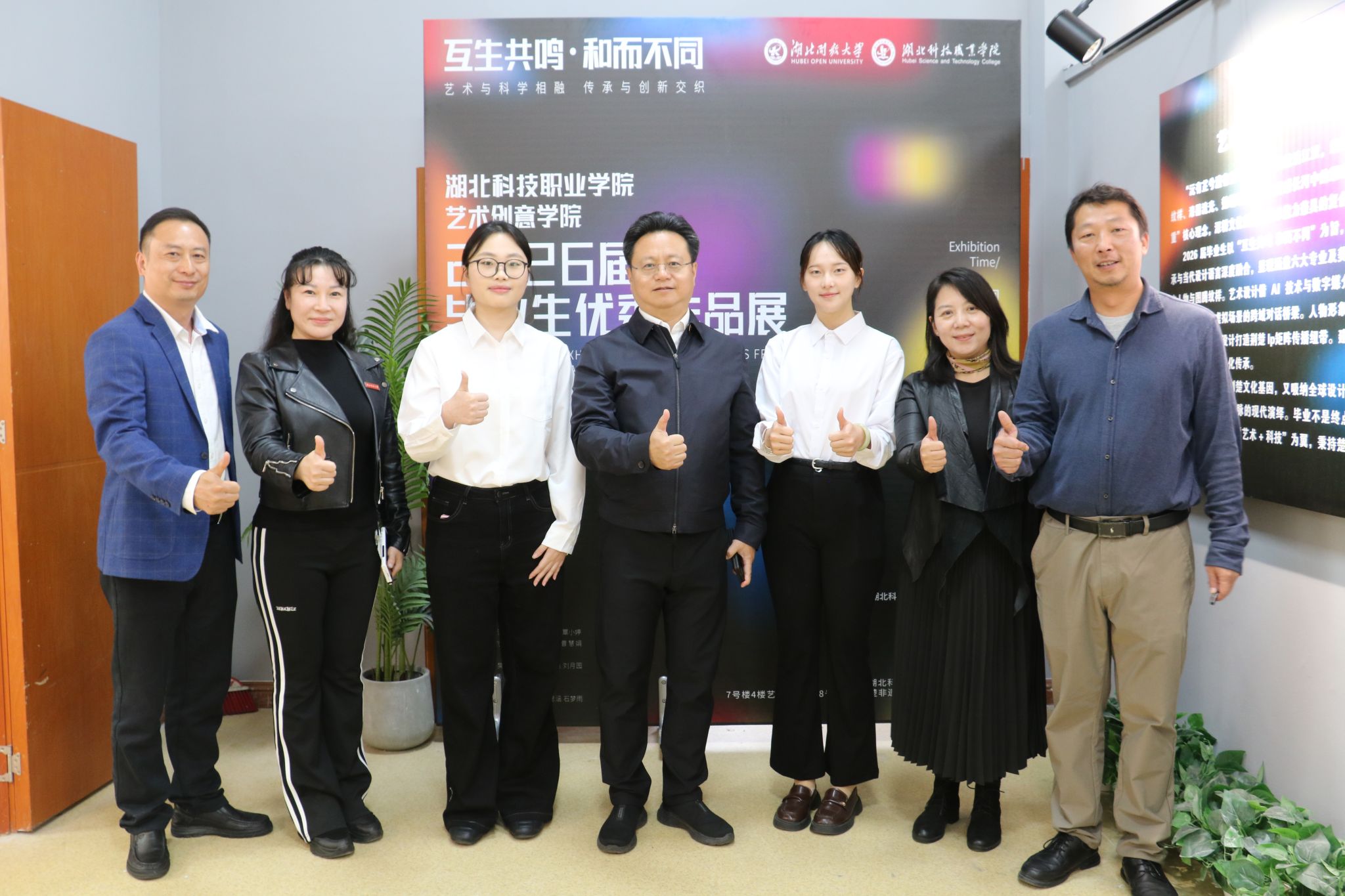 本网讯(通讯员 叶梦/文 李芳/图)10月30日,艺术创意学院2026届毕业生优秀作品展在鲁巷校区举行。本次展览以“艺术与科技融合、传承与创新并重”为核心,汇聚了艺术创意学院2026届毕业生在人物形象设计、艺术设计、广告设计、动漫设计等方向的优秀作品,集中呈现了毕业生在荆楚文化传承、AI+艺术融合、数字创意表达等方面的探索成果。展区内还特别设置了“小鄂宝”文创系列展示区,结合湖北地域文化与现代设计语言,展现年轻一代对本土文化的创新诠释。校长陈志祥莅临现场参观指导,并给予高度评价。