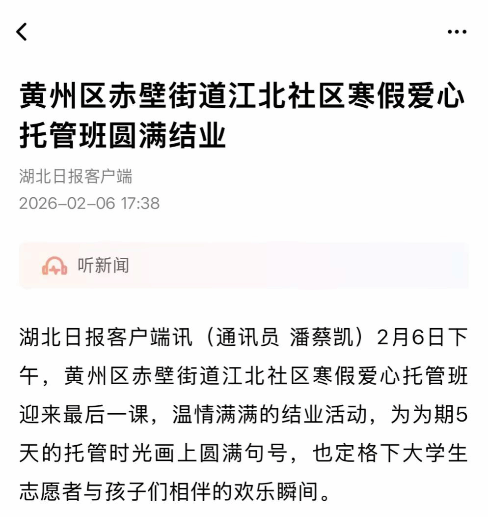 这个寒假,艺术创意学院学子用脚步丈量家乡土地,用真心服务社会群众。从课堂上的知识传递到社区里的温暖陪伴,再到车站里的秩序守护,他们用实际行动上好“行走的思政课”和“一线的专业课”,在服务家乡发展、投身湖北支点建设中贡献青春力量。